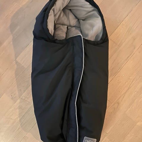 Reflex vognpose i svart ytterstoff med lyst innertrekk. Vognposen har glidelås i front og åpninger på baksiden for seler, slik at den kan brukes i barnevogn med ulike selesystemer. Polstret og vattert for å gi god beskyttelse mot vær og vind. Passer til baby og småbarn i barnevogn.