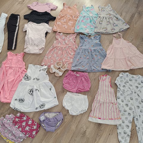 Genseren fra Newbie er 86/92, men stor i størrelsen. Skjørtet er i str. 92, men brukt t.o.m str. 98. Tights er 98 og genser 92, men brukt samtidig 🤗 Ingen anmerkninger!