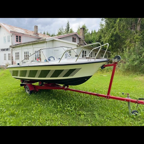 Det følger med båthenger med registreringsskilt. Hengeren har lys, skjermer over hjulene og festeanordninger for å sikre båten under transport. Passer for frakt og lagring av båten mellom sesonger eller til og fra sjøen.