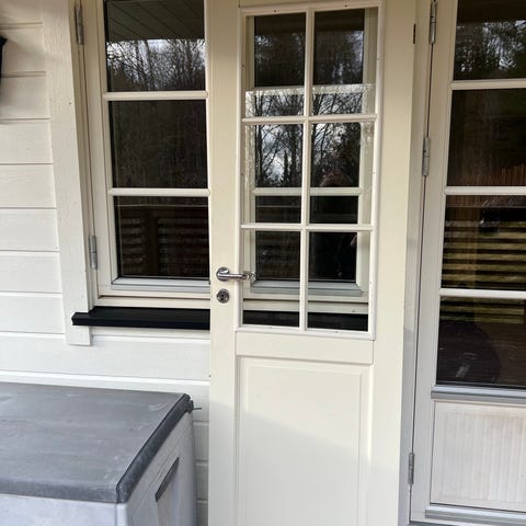 Nordan balkongdør med glassfelt og mørk/svart utvendig farge. Døren har stort glassparti som gir godt lysinnslipp og egner seg som utgang til balkong eller terrasse. Karm og ramme er i treverk med utvendig aluminiumsbekledning. Døren leveres med hengsler på siden og standard låsekasse (detaljer om lås og håndtak kan kontrolleres ved overtakelse). Egnet for montering i yttervegg mot balkong eller veranda i bolig.