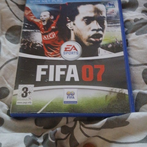 EA Sports FIFA 06 PlayStation 2 spill. Fotballspill på DVD-format til PlayStation 2-konsoll. Omslag og plate med motiv fra FIFA 06-utgaven.