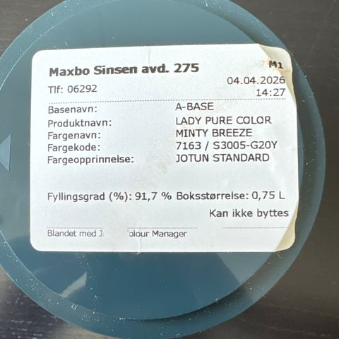 Selger en jotun fargeprøve i fargen frostrøyk. Er så og si ikke brukt - har prøvd fargen på veggen.