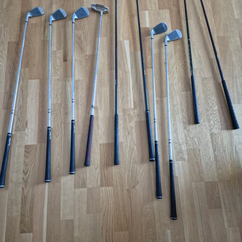 Golfjern bestående av seks jernkøller, nummerert fra 5,7,8,9,9 og pitching wedge