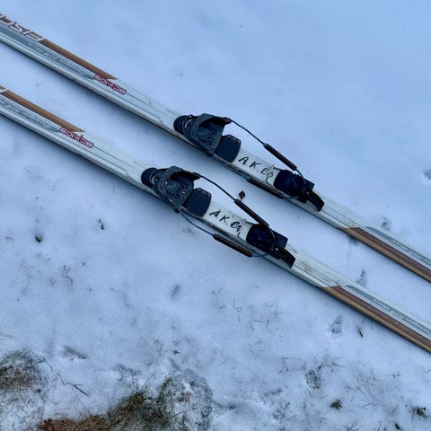 Det er noe gammel smørning igjen på skiene (ikke riper).