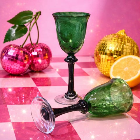 Vinglass: Høyde 23 cm og diameter 8,5 cm (kr. 500,- pr.stk)