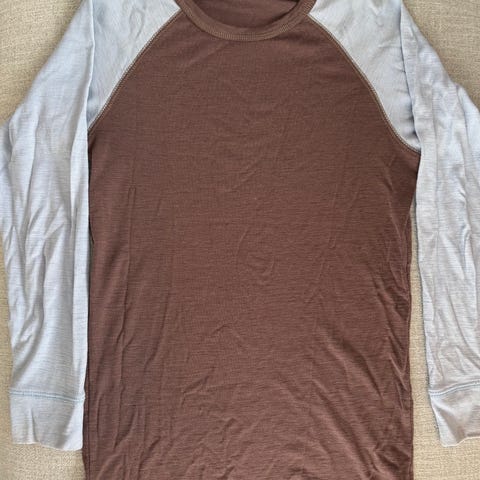 Noe tykkere og varm genser i ullblanding med 50% ull. Jeg har sammenlignet med annen genser og den tilsvarer str. 158 (står Barnestørrelse XXL på den). Godt brukt med noe nupper, men i god stand og uten hull. Varm og god genser til å ha som mellomlag.