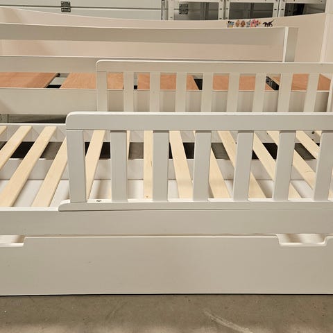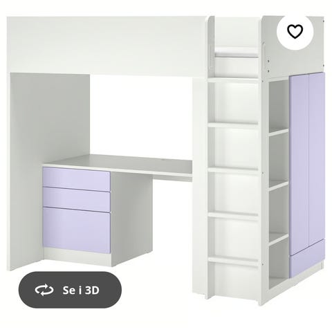 Pent brukt Ikea Småstad loftseng selges pga. overgang til ny seng. Kjøpt ny mars 2024. Hele sengen fremstår som hel og pen. Finner kun et par avvik. Skallet av litt maling oppe ved sengen (har prøvd å flekke litt) og en liten sprekk på kanten av skrivepulten. Se bilder.