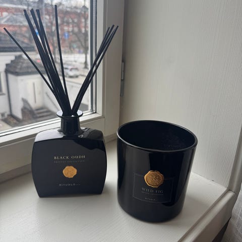 Rituals Private Collection. Tom beholder til Wild Fig duftpinner. Flasken rommer 450 ml, og er tidligere design før de byttet til gjennomsiktige flasker og endret farge på Wild Fig.