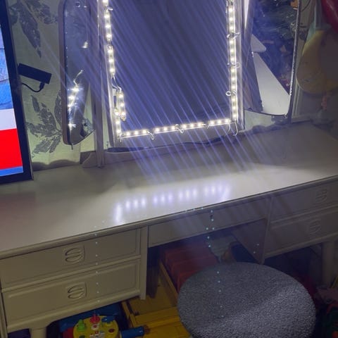 Super fin skrivepult med mye oppbevaring, både det smale rommet under pulten og tre skuffer. Møbelet er godt brukt og noen av skuffene bør fikses. De sklir opp og den nederste så er døren helt bak løs. Men fungere like fint! Ønsker å kvitte meg med den fordi den ikke lenger blir brukt.