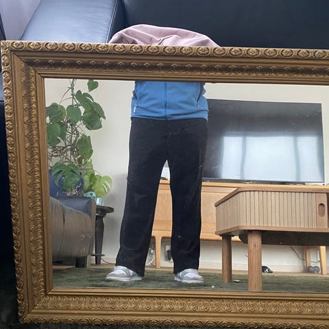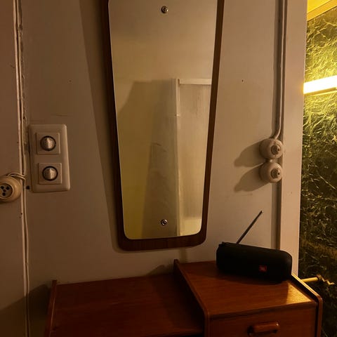 Speil veggspeil trekantet ca. 40 x 70 cm treverk
