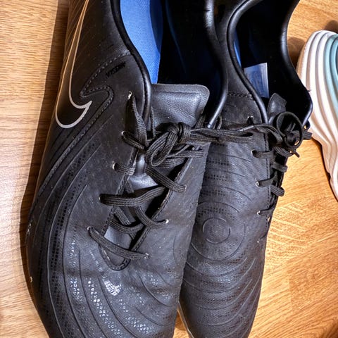 Nike fotballsko i størrelse 34. Skoene er i blå farge med kontrastdetaljer og snøring foran. Beregnet for bruk til fotballtrening og kamp på bane. Passer til spiller som bruker skostørrelse 34