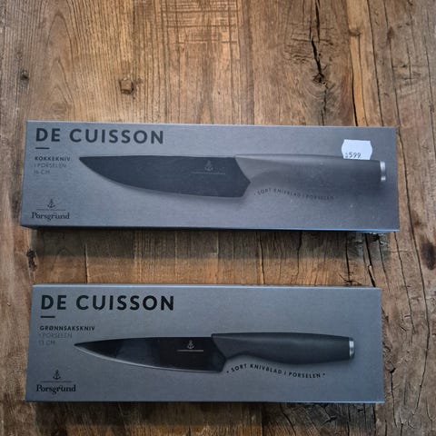 Porselensknivene fra Porsgrund Porselænsfabrik er laget av en type porselen som på en hardhetsskala kan plasseres rett under diamant. Dette sikrer at knivbladet holder seg skarpt i lang tid. Disse er utmerket til å skjære grønnsaker, frukt, ost, benfritt kjøtt og lignende. Porselen vil aldri ruste eller sette smak på maten. Frukt og grønt vil holde seg friskere enn med en stålkniv som setter igang oksideringsprosessen raskere.