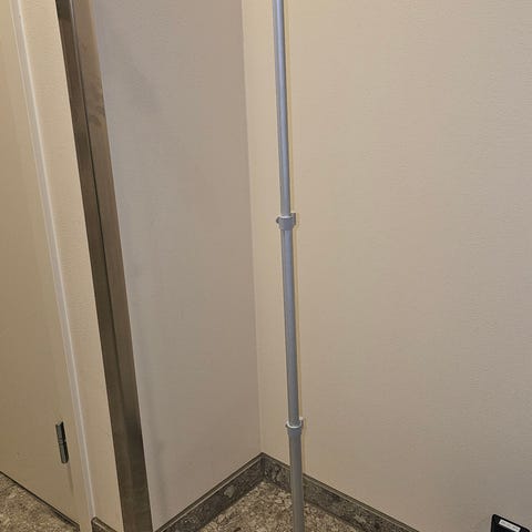 Frittstående kles-stativ, kan henge fra seg jakker, bukser etc. Til soverom, gjesterom, hytte etc. Slås sammen og tar liten plass.