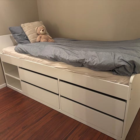 Må hentast, men kan hjelpa til med å bera senga til bilen.