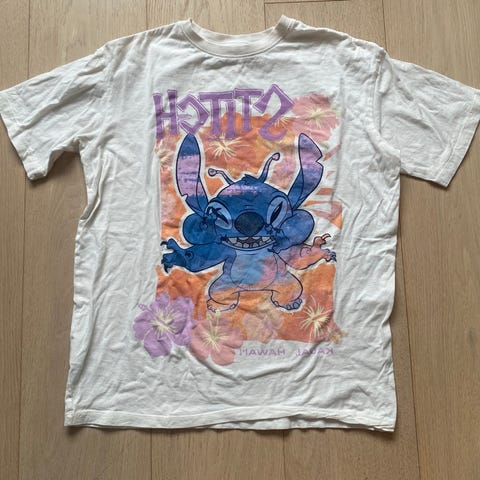 Pent brukt t-skjorte med stitch i str.134/140 fra h&m. Selges nå til 50 kr.
