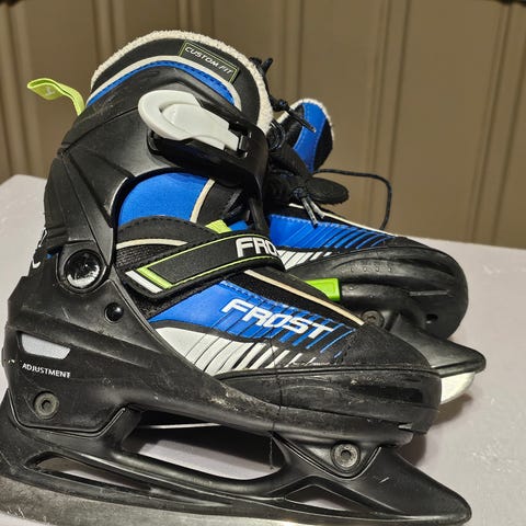 Praktiske og justerbare skøyter. Modellen har hard yttersko med justerbare stropper og lisser for god støtte rundt ankelen. Fargekombinasjon svart, rød og hvit.