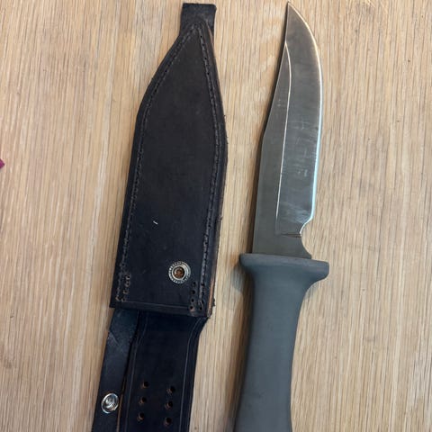 Kniven er brukt og har synlig patina på bladet, men er mekanisk solid. Egner seg fint som turkniv eller til samling for Buck-entusiaster. Selges som den er.