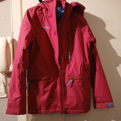 Bergans jakke for barn, jente, i størrelse 128. Jakken har to hovedfarger i rosa-toner. Den har avtagbar hette, glidelås i front og to lommer med glidelås. Refleksdetaljer finnes på ermer og rygg for bedre synlighet. Passer til hverdagsbruk, ski og utendørsaktiviteter.