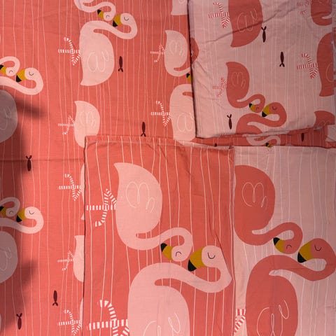 Sengesettet består av dynetrekk og putevar i mykt stoff egnet til barneseng.