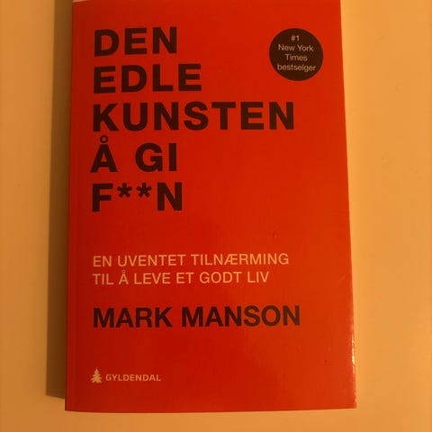 Mark Manson Den edle kunsten å gi f**n bok. Norsk oversettelse av selvutviklingsbok som tar for seg en uventet tilnærming til å leve et godt liv.