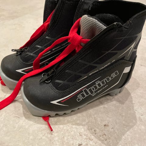 Selger fint brukte skisko til barn, i størrelse 28. Alpina er noe små i størrelsen, og vi har gått opp en størrelse; Passer til barn som normalt bruker str 27.