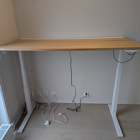 Selger et pent brukt elektrisk hev- og senkbart skrivebord i hvit utførelse. Bordet fungerer helt som det skal og er godt tatt vare på. Stilrent og solid – passer perfekt til hjemmekontor eller kontorarbeidsplass.