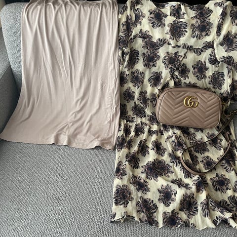 Str. italiensk 42, norsk 38, bredde fra armhule 49 cm x 2, lengde 97 cm.
