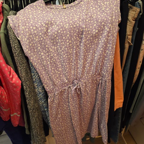 Indiska hverdagskjole i bomull for dame i størrelse S. Kjolen er brun med et allover mønster. Den har ermeløst snitt og rund hals. Passer som en enkel hverdagskjole i lett og behagelig bomullsstoff.