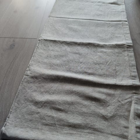 Materialet er rent lin, som gir en lett strukturert overflate. Fin liten kan på duken.