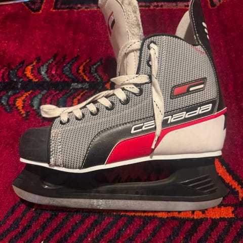 GRAF Super 201 ishockeyskøyter i størrelse 43 og en halv .Skøytene er i hovedsak svarte med hvite lisser og polstret innside. Modellen er egnet til ishockeybruk. Overdelen er høy for å gi støtte rundt ankel, og sålen er utstyrt med faste skøytestål tilpasset ishockey. Passer til bruk på isbaner for trening eller fritidsspill i ishockey.