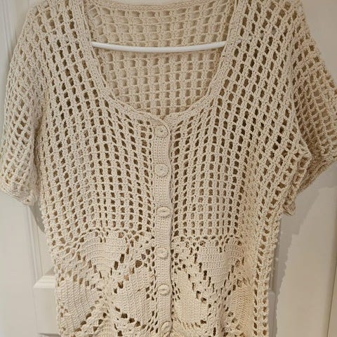Heklet cardigan for dame i størrelse M og beige farge
