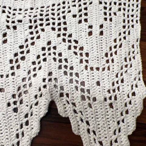 2 lengder med håndheklede gardinkapper. Ingen feil eller mangler, ikke røyk, ikke dyrehår og ingen lukt.
