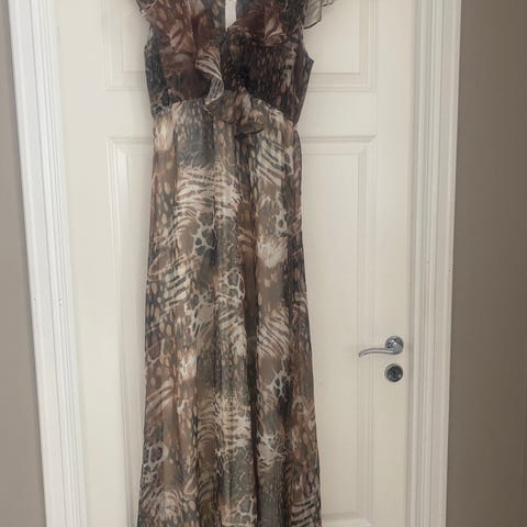 En kjempefin kjole fra Freequent. Knallrosa med blomsterdetaljer. Kun blitt brukt én gang i en dåp. Den har en knapp i utringingen, som gjør at den er veldig ammevennlig. Ser helt ny ut! Kostet 899 kr.