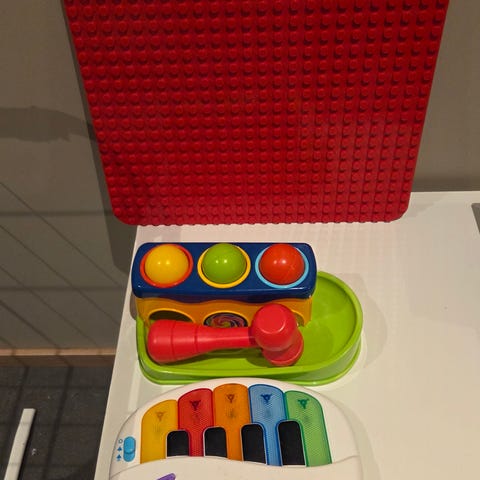 Stor boks med godt brukte leker, bøker og bamser