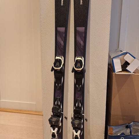 Atomic Plus 5 alpinski med bindinger. Klassiske carvingski. Lengde 177.