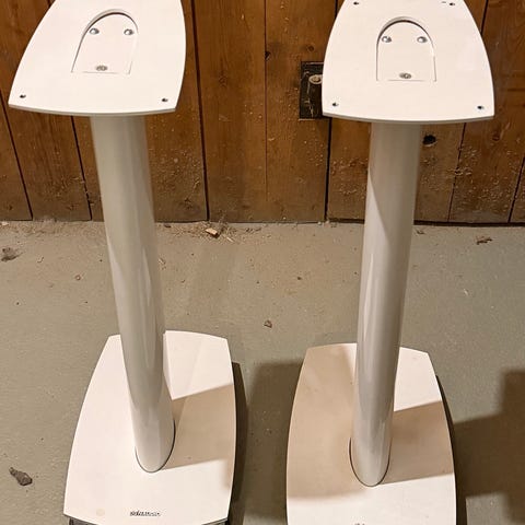 Selger et par originale Dynaudio høyttalerstativer i sort utførelse. Tunge og stabile stativer som gir god demping og riktig høyde for stativhøyttalere.