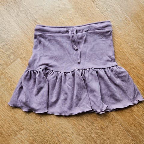 WoolLand skjørt for jente i størrelse 92-96. Skjørtet er i rosa merinoull og har strikk og snøring i livet for justering av passformen. Det har volangkant rundt og liten hjerteapplikasjon med WL-logo foran. Passer til hverdagsbruk og som en del av lag-på-lag bekledning i ull.