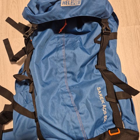 Helsport Sarek ACS 70l, blå ryggsekk selges. En god, romslig tursekk perfekt til turer i skog og mark.