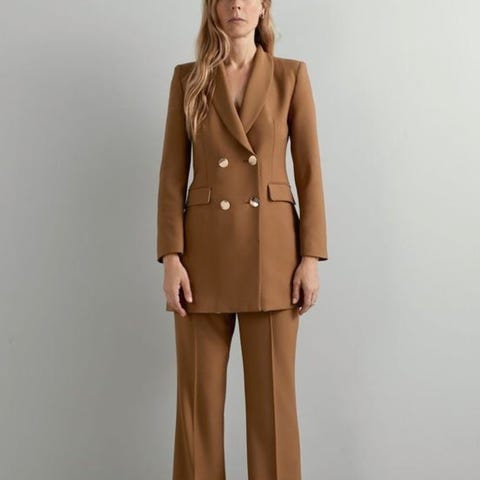 Nydelig dress fra Zara i vårlig fin kamelfarge. Blazer er str M og buksen str S men passer fint til str 38