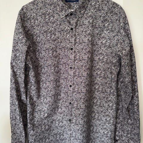 Selger en unik og stilig langermet skjorte fra det britiske merket Twisted Tailor. Skjorten har et fantastisk mønster av måner og stjerner i gull-foil mot en dyp sort bakgrunn – perfekt for deg som vil skille deg ut i mengden.