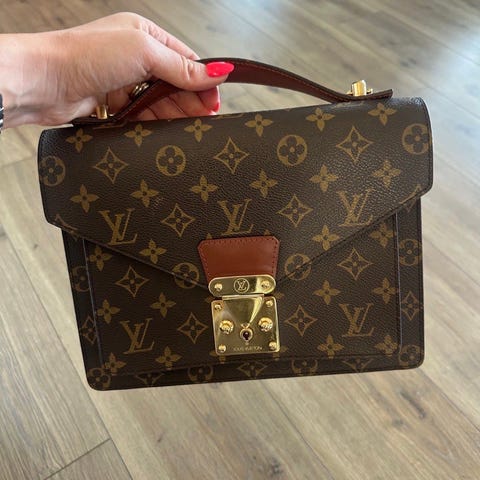 Louis Vuitton Noé GM (den største) fra 2001, i monogram canvas med hardware i gullfarget messing. Den har en stor lomme som lukkes med drawstring og har regulerbar skulderreim.