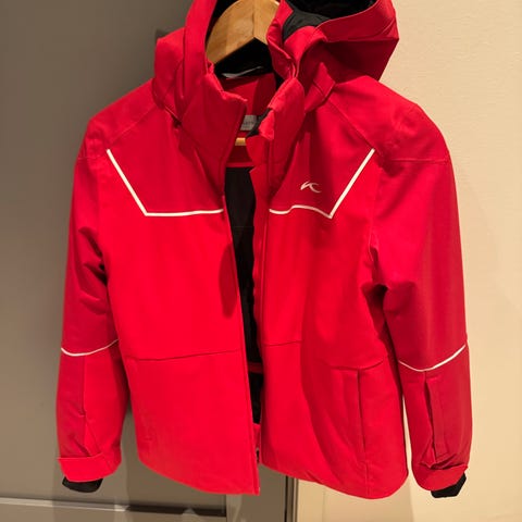 Kjus skijakke og skibukse i oransje farge. Jakken har hette, glidelås i front, flere glidelåslommer og refleksdetaljer. Skibuksen har seler og rette ben. Sett egnet for bruk i skibakken og andre vinteraktiviteter.