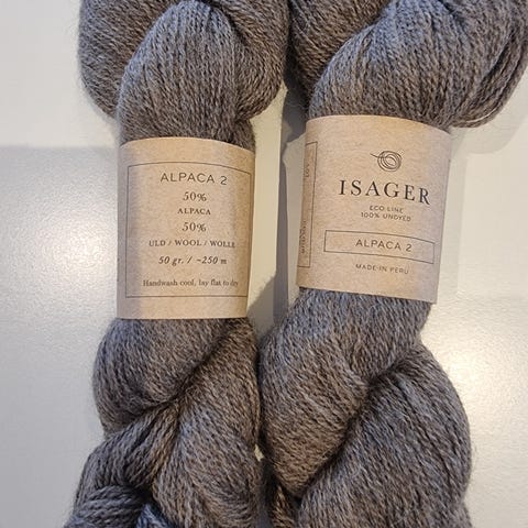 Alpaca 2 fra Isager er et totrådet garn som inneholder 50% ull og 50% Alpaca.
