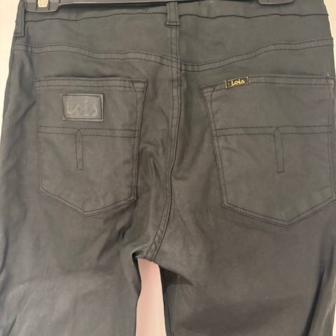 Malena Clean fra Lois i fargen Montana Black. Buksen er «coated» og ser derfor ut som en skinnbukse. Den er myk og med høyt liv.