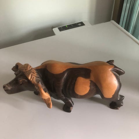 Retro keramikkfigur – håndlaget okse/buffel – 70/80-tall