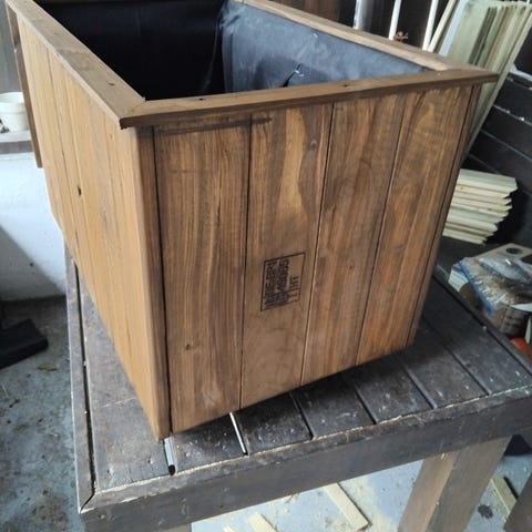 KRAFTIG HJEMME LAGET BLOMSTERKASSE LAGET AV IMPREGNERT MATERIALE BEISET MED FIBERDUK