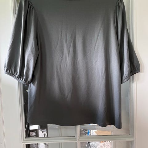 Object bluse for dame i størrelse 36. Blusen er svart og laget av viskose. Modellen har rund hals og halvlange ermer med lett volangdetalj nederst. Stoffet er lett og faller mykt. Passer til bruk både til hverdags og enklere penere anledninger, og kan kombineres med både bukser og skjørt.