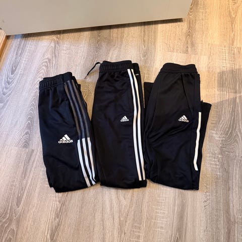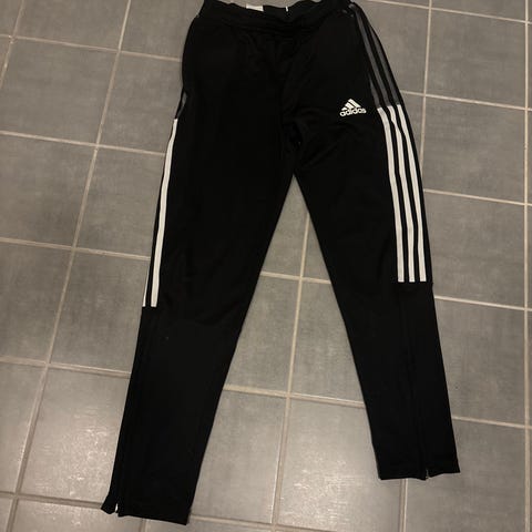 Adidas Climacool fotballbukse for barn i svart farge. Buksa har elastisk linning med snøring, glidelåslommer i sidene og glidelås nederst på bena. Klassiske Adidas-striper langs sidene og lite Adidas-logo på låret. Laget i lett og pustende Climacool-materiale som transporterer fuktighet bort fra huden. Passer til fotball og annen trening. Størrelse merket som one size for barn (se eventuelle mål fra selger for nøyaktig passform).