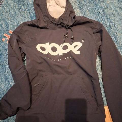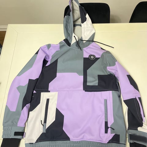 Hettegenser med kamuflasjemønster i gråtoner og svarte ermer og hette. Genseren har hette uten snøring og lang erm. Passer til hverdagsbruk og fritidsaktiviteter. Materiale og størrelse er ikke oppgitt av selger.
