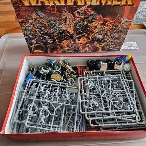 Games Workshop Warhammer The Horus Heresy Legions Imperialis Cerberus Overlord Heavy Stalkers figursett. Esken inneholder miniatyrfigurer i skala til Legions Imperialis-systemet, beregnet for montering og maling. Settet brukes som en del av hærbygging og spill i Warhammer The Horus Heresy Legions Imperialis. Innholdet består av plastdeler som settes sammen til Cerberus Overlord Heavy Stalkers-enheter etter medfølgende monteringsanvisning.